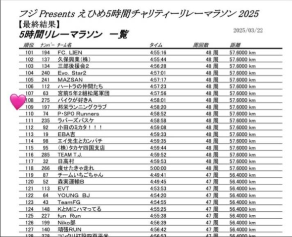 3月22日 えひめ5時間チャリティーリレーマラソン